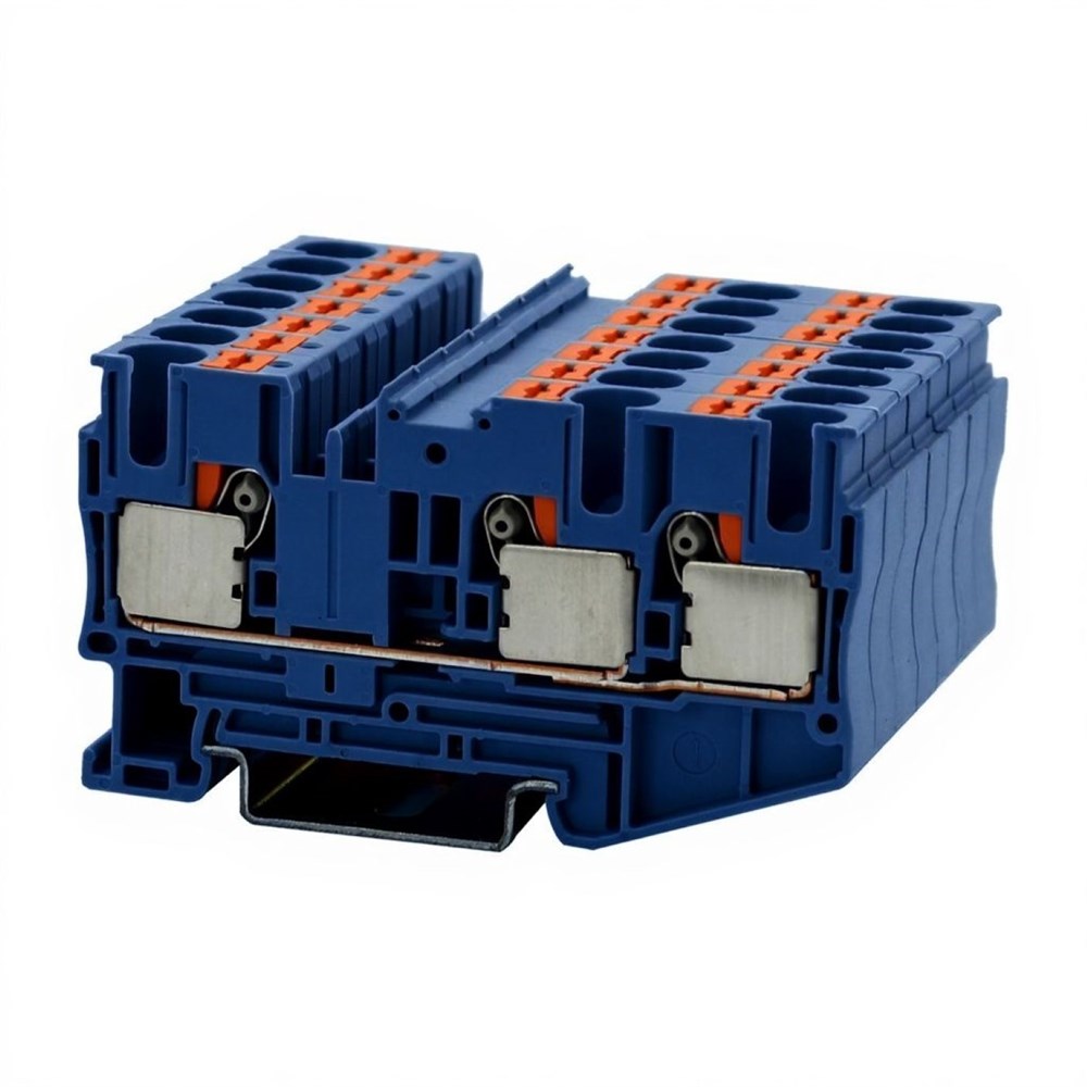 Проходные клеммы, номинальное напряжение: 1000 В, номинальный ток: 41 A, тип подключения: зажимы Push-in, 1 уровень, расчетное сечение: 6 мм², сечение: 0,5 мм² - 10 мм², тип монтажа: РМ-35/7,5, РМ-35/15, цвет: синий