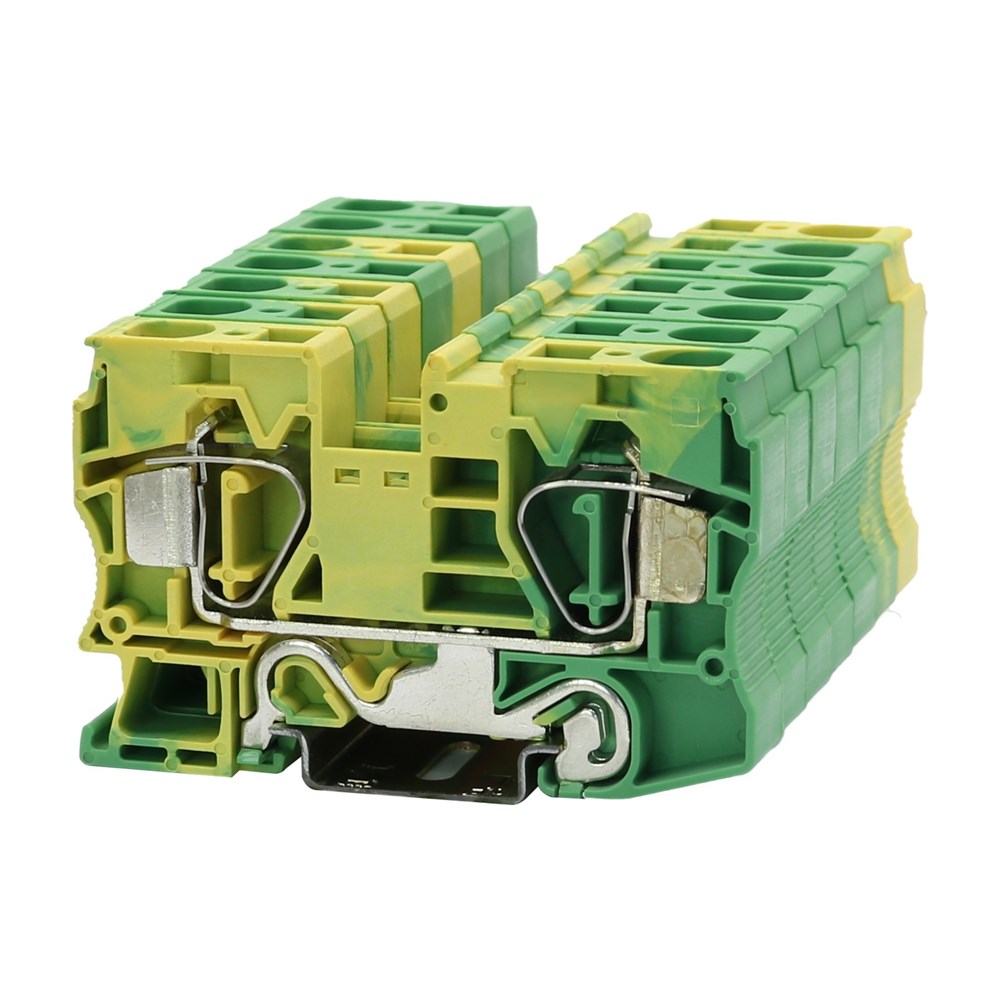 Заземляющая клемма с пружинными зажимами, количество точек подсоединения: 2, тип подключения: пружинный зажим, 1 уровень, расчетное сечение: 16 мм², сечение: 0,2 мм² - 25 мм², тип монтажа: РМ-35/7,5, РМ-35/15, цвет: желто-зеленый
