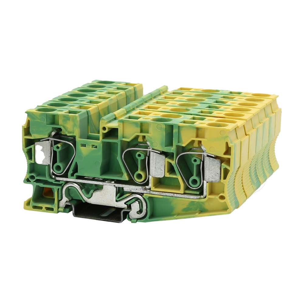 Заземляющая клемма, количество точек подсоединения: 3, тип подключения: пружинный зажим, расчетное сечение: 16 мм², сечение: 0,5 мм² - 25 мм², тип монтажа: РМ-35/15, РМ-35/7,5, цвет: желто-зеленый