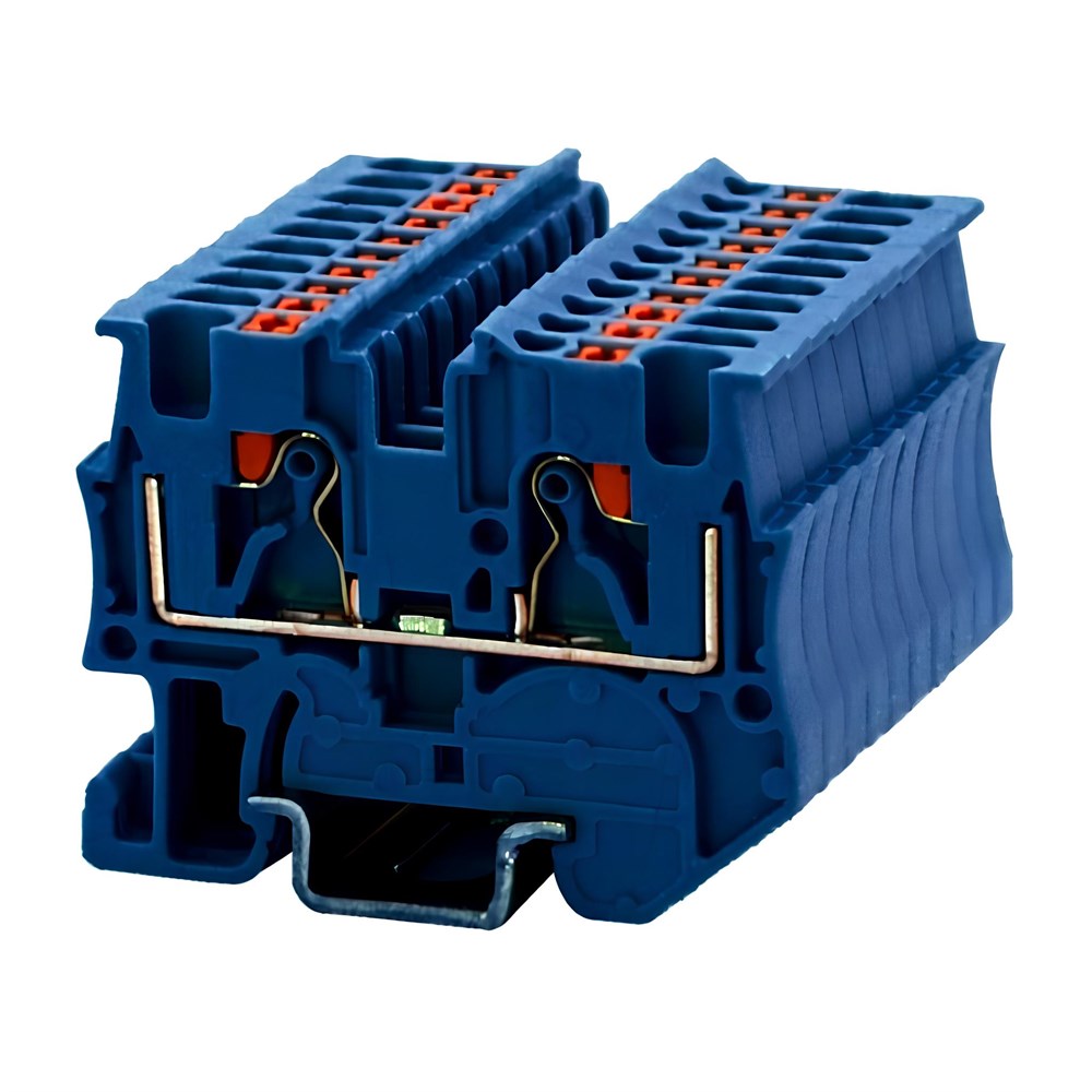 Проходные клеммы, номинальное напряжение: 500 В, номинальный ток: 17,5 A, тип подключения: зажимы Push-in, 1 уровень, расчетное сечение: 1,5 мм², сечение: 0,2 мм² - 1,5 мм², тип монтажа: РМ-15/5,5, цвет: cиний