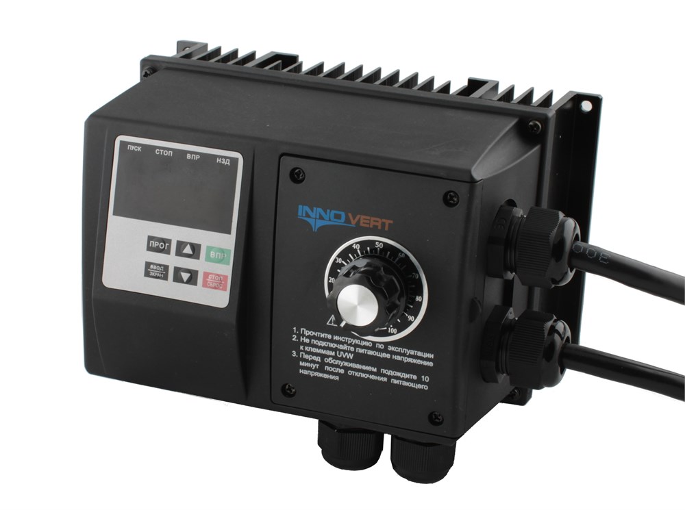 Преобразователь частоты пыле- влагозащищенный INNOVERT IPD251P21B-VR IP54, 0,25 кВт (вход: 1фаза x 220В / выход: 3фазы х 220В) выходной ток 1.5 А, встроенный потенциометр
