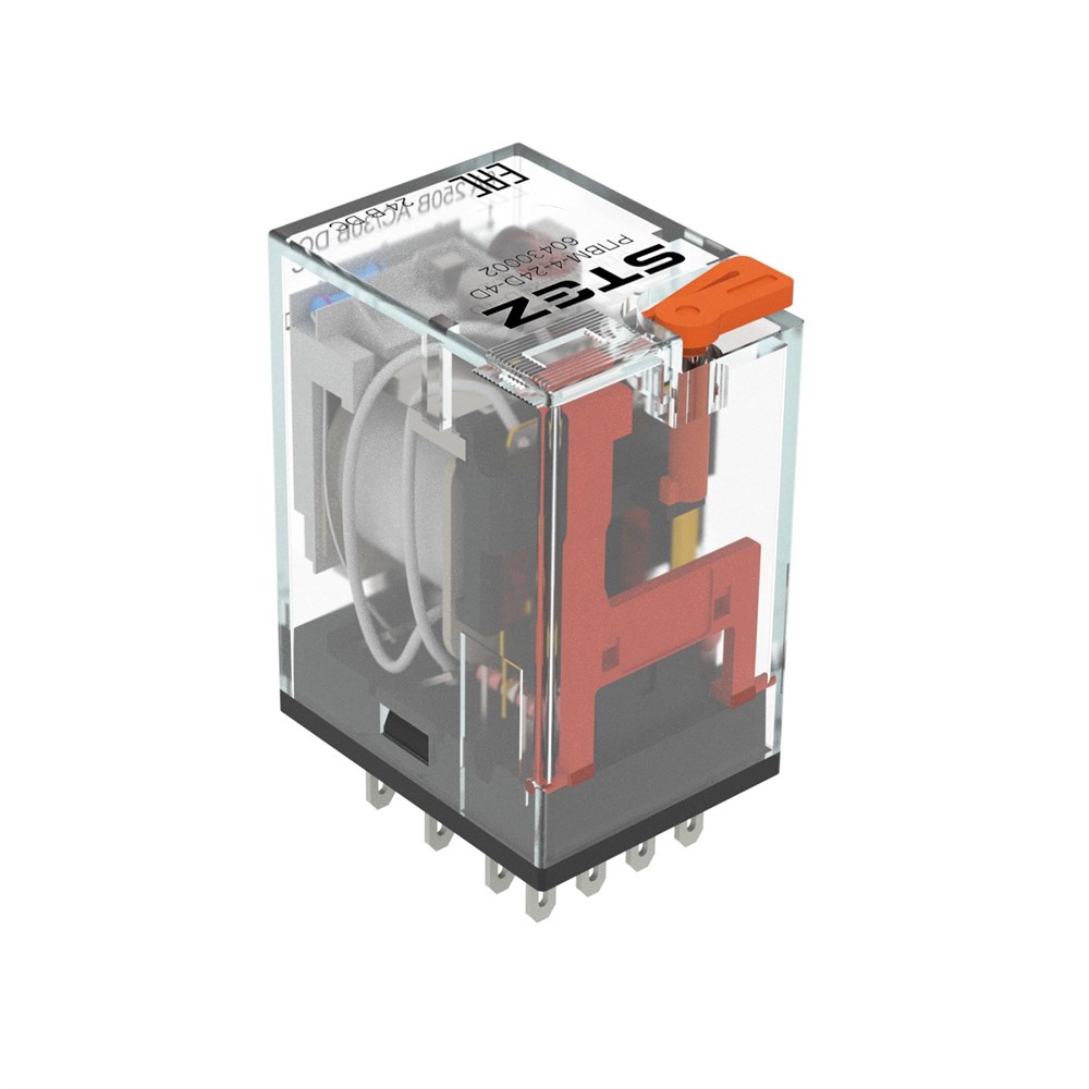Вставное реле, Uвх= 24 В DC, 4 контакта, 6 А, защитный диод, LED, тестовая кнопка